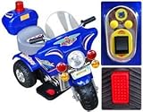 This awesome battery powered ride on electric motorcycle is great for kids. Features include, a rechargeable 6 volt battery, 3 wheels with treads, working lights, & a 6 Volt charger. Check out the awesome police style siren lights. Start cruising your house or block in style with this awesome battery powered ride on toy. Plus, it has plenty of power to get up concrete aprons and can ride on sidewalks too.Features: Brand new in box ready to ship immediately Easy to operate, kids can work on it themselves after first time showing by parents Left, right, forward and backward function Working spotlights and dynamo Siren and music available Rechargeable battery Pedal control on the right foot side Specially designed seat for extra comfort Storage box in utility for kids to put some toys and feel like real traveling Recommended for kids 3-8 years old Can be loaded up to 66 lbs Minor assembly required Tricycles in pink also available Specifications:Speed: up to 1.5 mph Battery output: 6V 4Ah Charger output: 6V 500MA Charging time: 10 hours Utility time: 1 - 2 hours PLEASE SEND NOTE THRU CONTACT SELLER ON AMAZON ON COLOR YOU WISH FOR ME TO SEND IMMEDIATELY AFTER PURCHASE Overall dimension: 30 "(L) x 12"(W) x 22"(H) Accessories:1 Ride On Battery Powered Motorcycle Trike1 battery 1 charger 1 manual Due to extremely high demand for these ride on cars, color choice will be preferenced, but cannot be guaranteed. Each of the colors looks very nice and we definitely do our best to send the color selected. If the color chosen is out of stock, then the next most popular color will be sent.