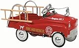 Combining a delightfully retro design that will please parents with easy-to-operate pedal action, this InStep Fire Truck pedal car will bring a smile to your child as he or she rambles through the neighborhood. Based on the design of the best-selling "Dip Side" pedal car from the 1950s, this InStep pedal car features solid steel construction for outstanding durability for years to come, and it's decorated with bright fire engine red lead-free paint. It's further complemented by shiny chrome steering wheel and ladder holders (with removable wooden ladders) and a bell attached to the hood with a fire helmet accent on top and string that attaches to the steering wheel. Other features include a small storage area behind the seat, rubber tires with chrome hub caps, and an adjustable pedal drive that fits a wide range of kids' sizes. Some assembly required. Appropriate for children ages 3 and up.Specifications and Features:
