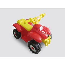 This battery-powered Little Tikes 4-wheel quad is a safe and fun first riding vehicle for toddlers. It has a simple push button control on the handle bar and built-in foot rests for slow stop-and-go movement. Adult assembly and supervision required. Recommended for outdoor use only.